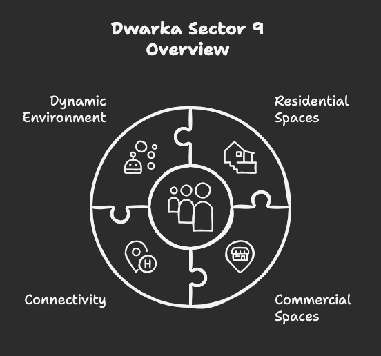 Dwarka Sector 9 is a highly sought-after location due to its strategic connectivity, vibrant community life, and abundance of modern amenities. Its proximity to the metro station allows for easy commuting across Delhi, while a range of nearby educational institutions, healthcare facilities, and shopping centers provide added convenience for residents.